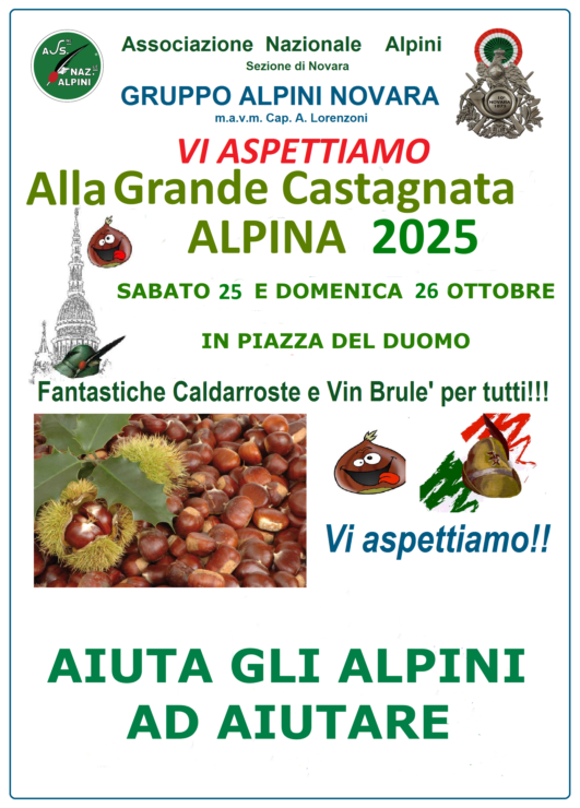 - Sabato 25 e Domenica 26: Grande Castagnata Benefica del nostro Gruppo in Piazza del Duomo